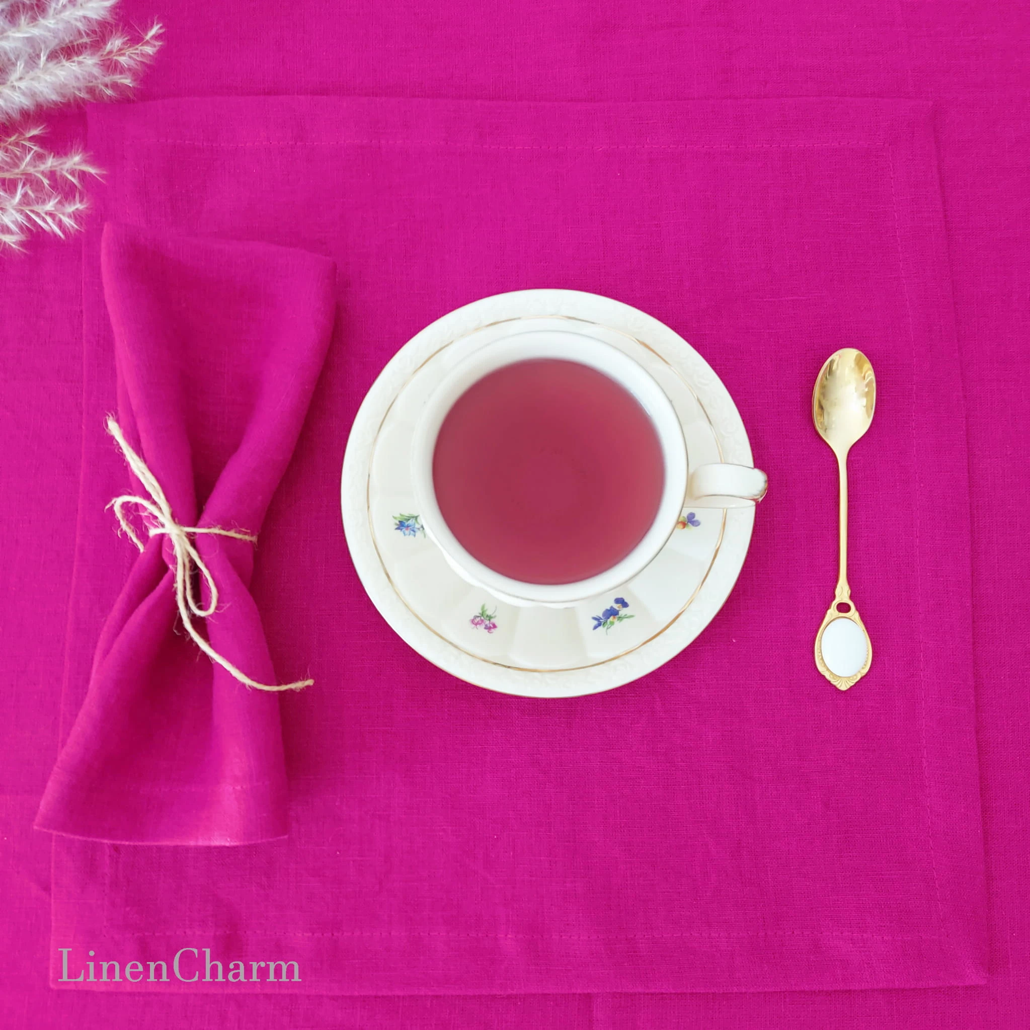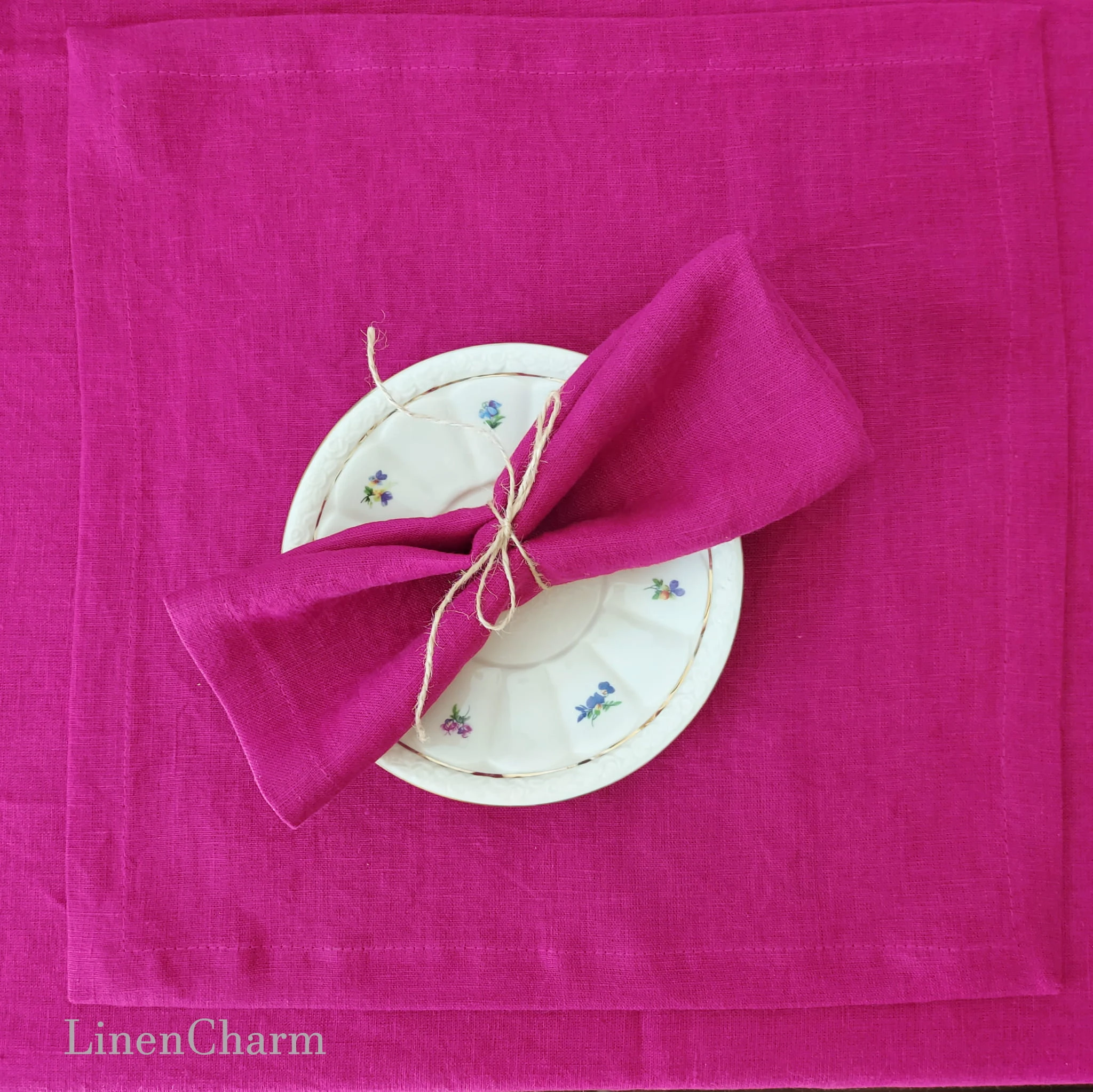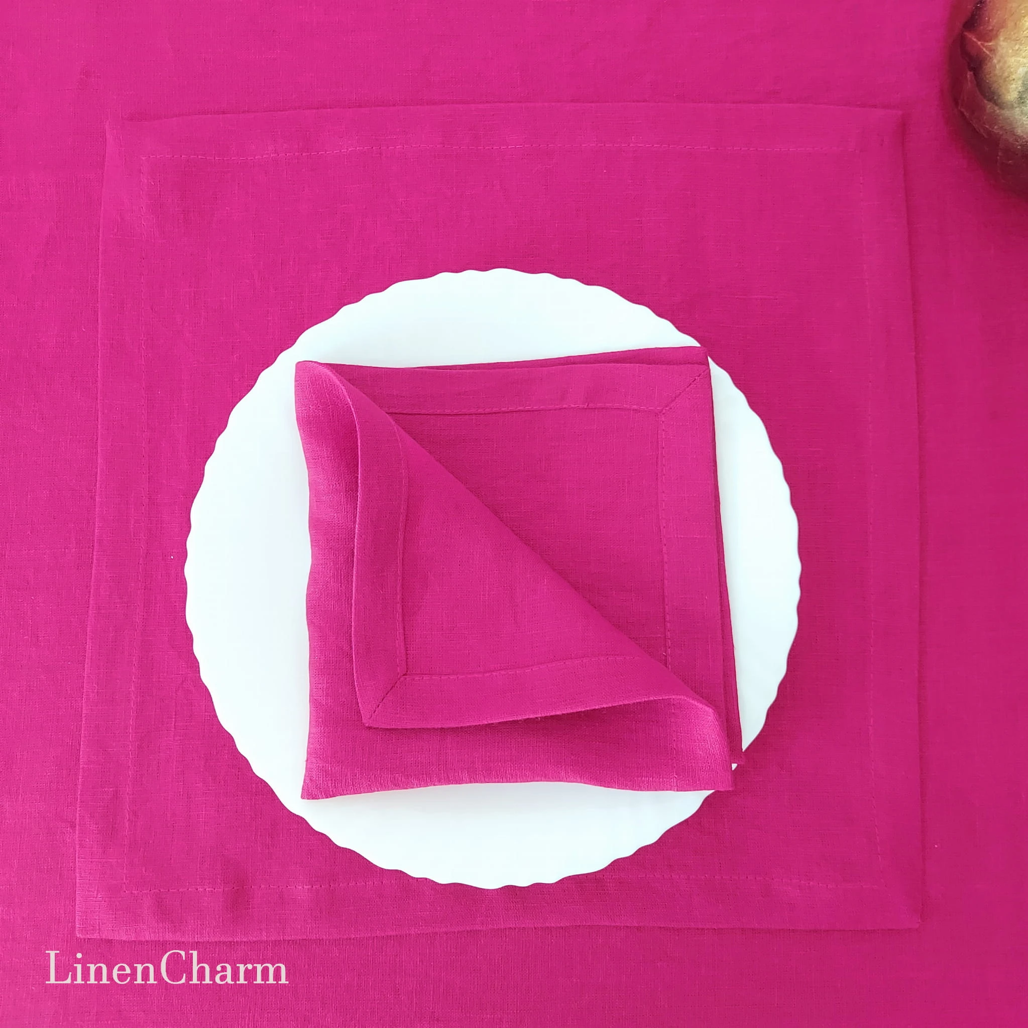 Serwetki Lniane, Lniana Serweta 35 x 35 cm, 205g/m2 Len Fuksja, Miękki Len