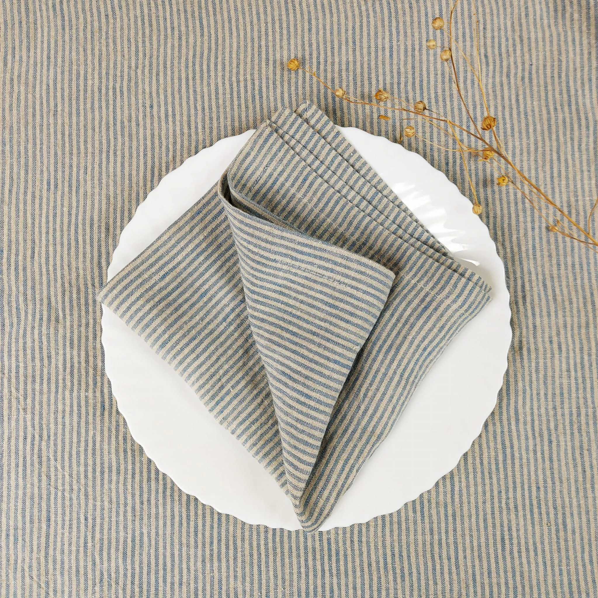 Serwetki Lniane, Lniana Serwetka 35 x 35 cm, 205g/m2 Len Niebieskie Paski, Miękki Len