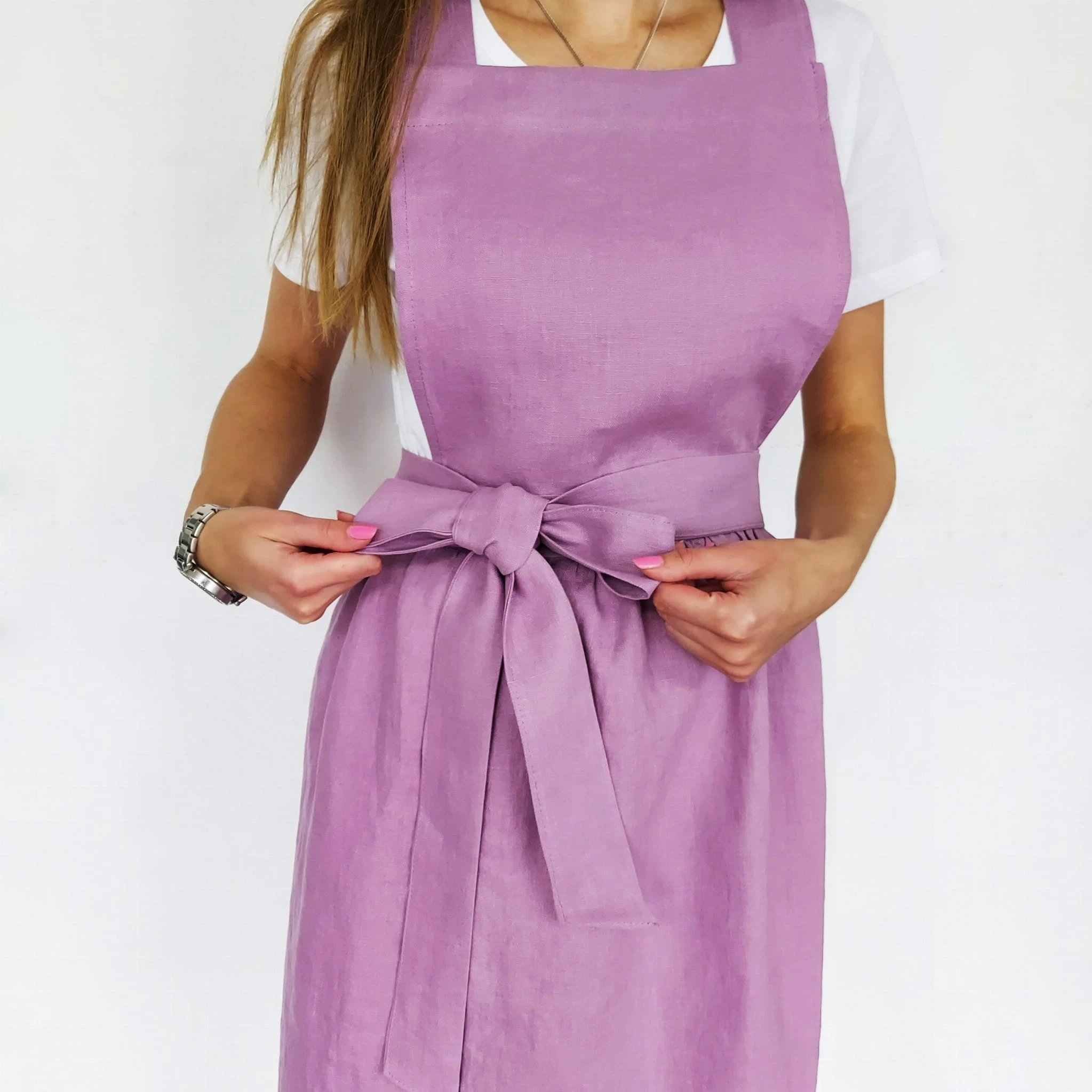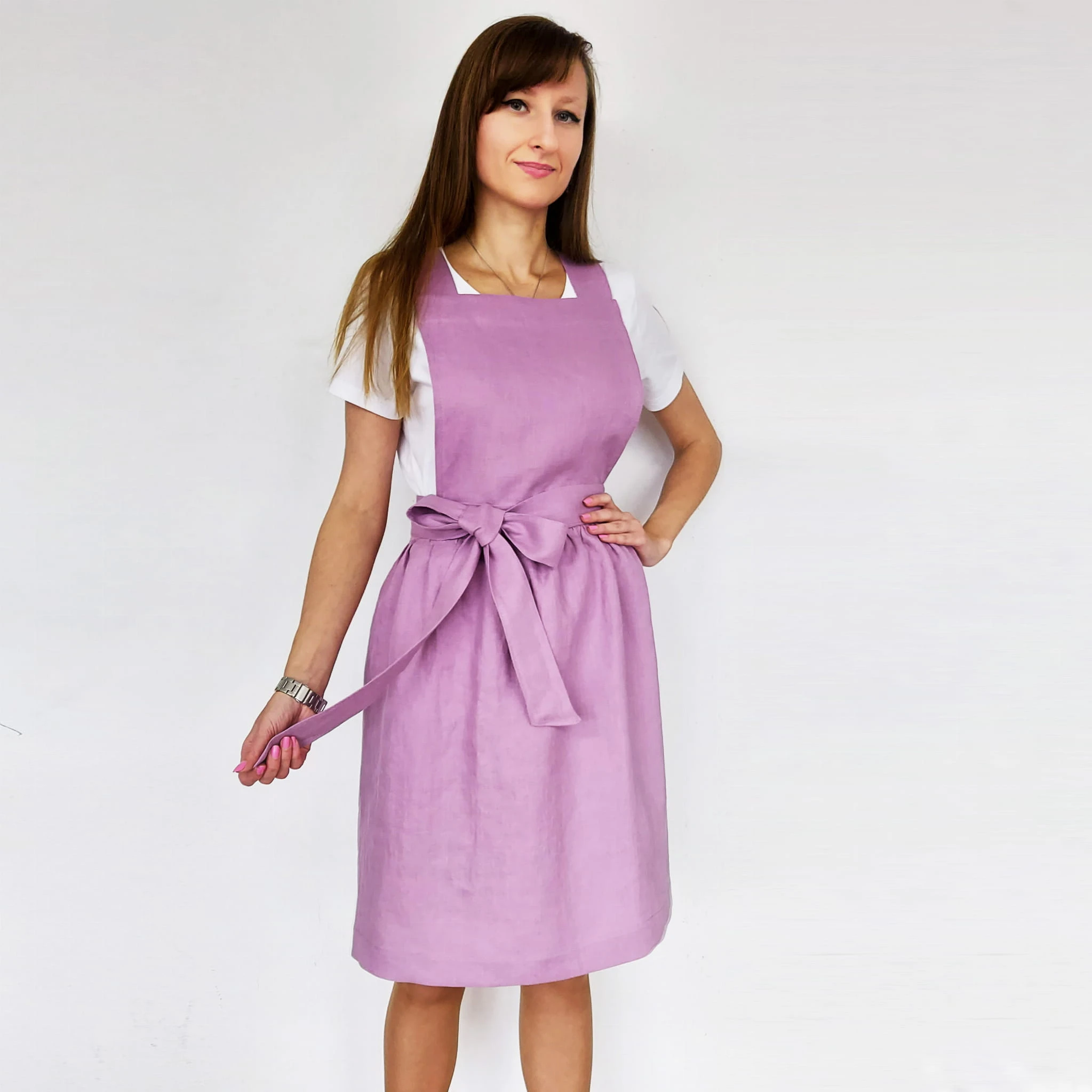 Fartuch kuchenny, Zapaska kuchenna Mini, Lniany Fartuch kuchenny, Len Liliowy