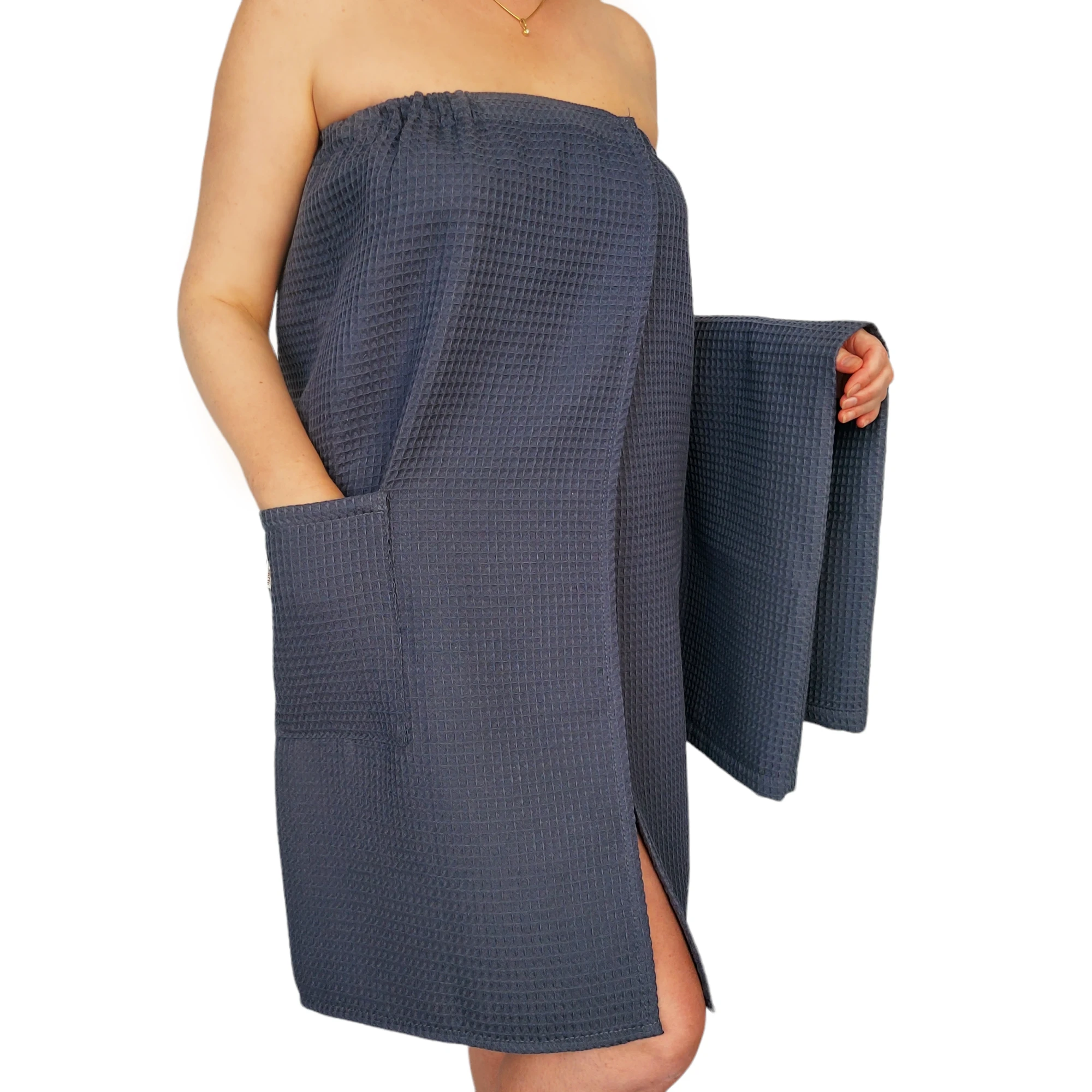 Zestaw do sauny pareo + ręcznik, wafel bawełna 230g, Ręcznik na saunę Antracyt