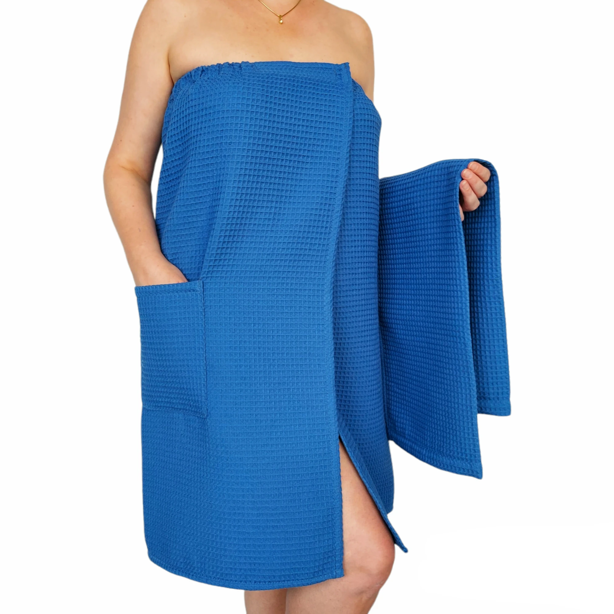 Zestaw do sauny pareo + ręcznik, wafel bawełna 230g, Ręcznik na saunę Granat