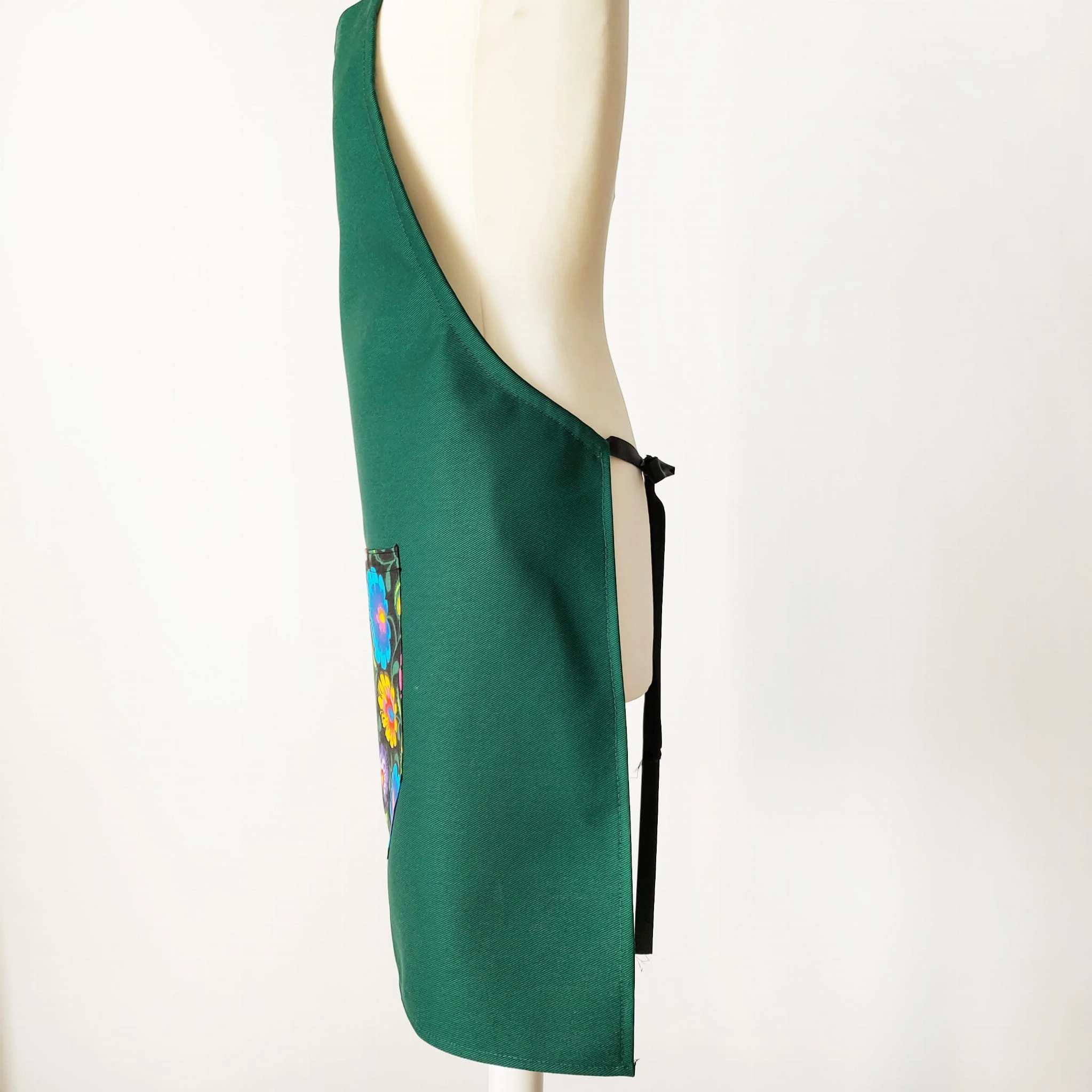 Szmaragdowy fartuch bawełniany z kieszonką – wzór łowicki | Polska jakość