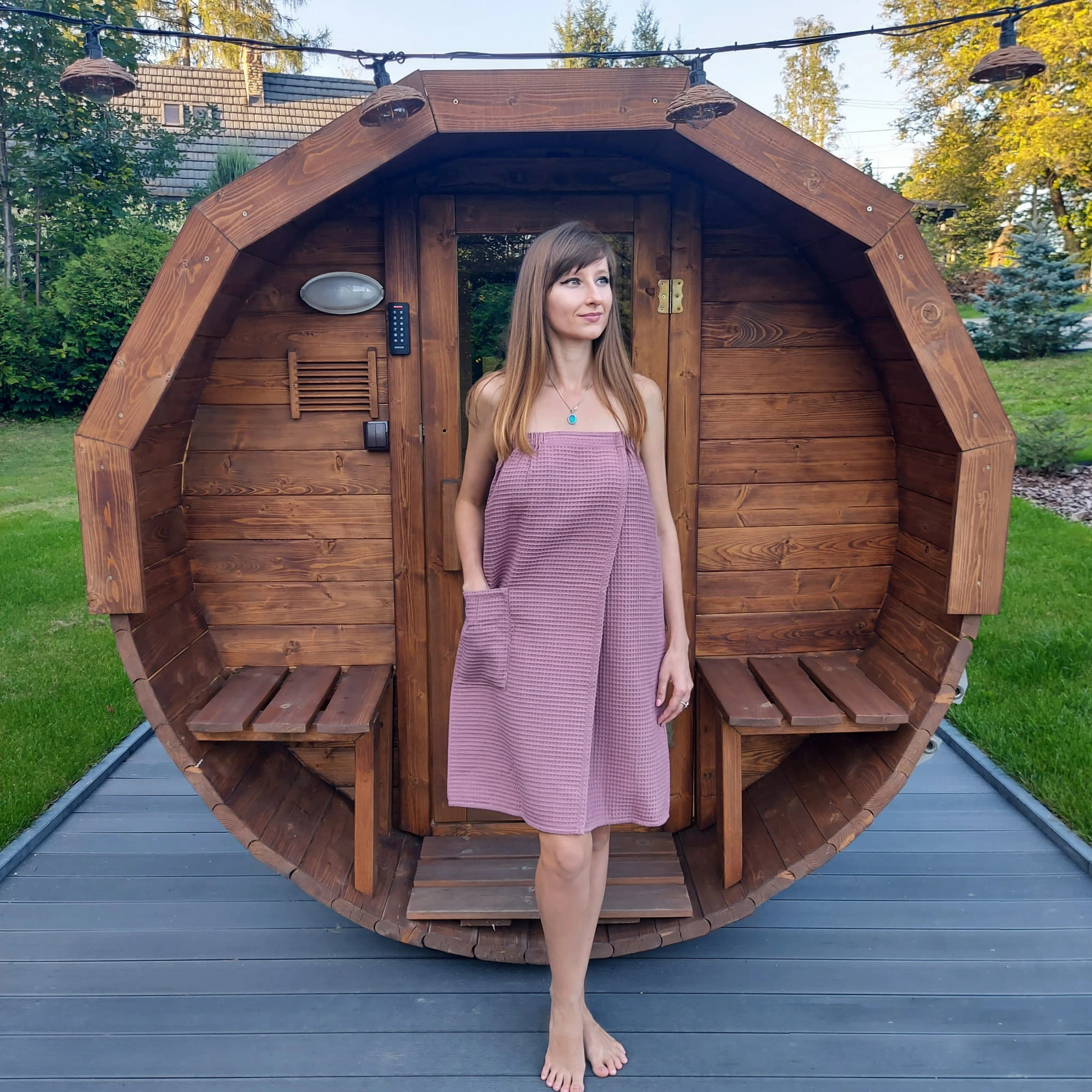 Pareo do spa i sauny – pelerynka z bawełny waflowej, Stary Róż