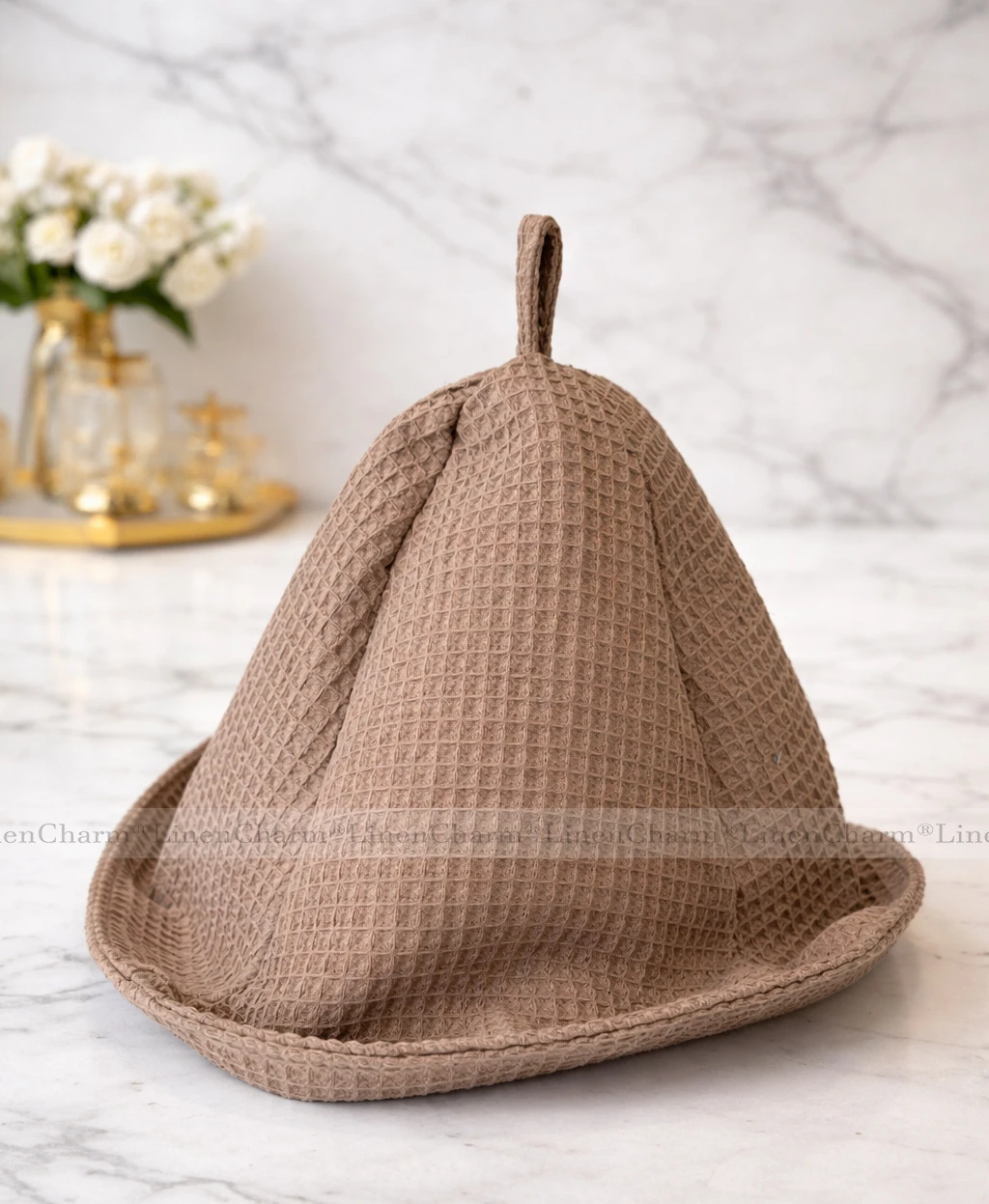 Czapka do Sauny Wafel Bawełna 100% | Męska Damska | Ochrona Głowy | Ciemny Beż
