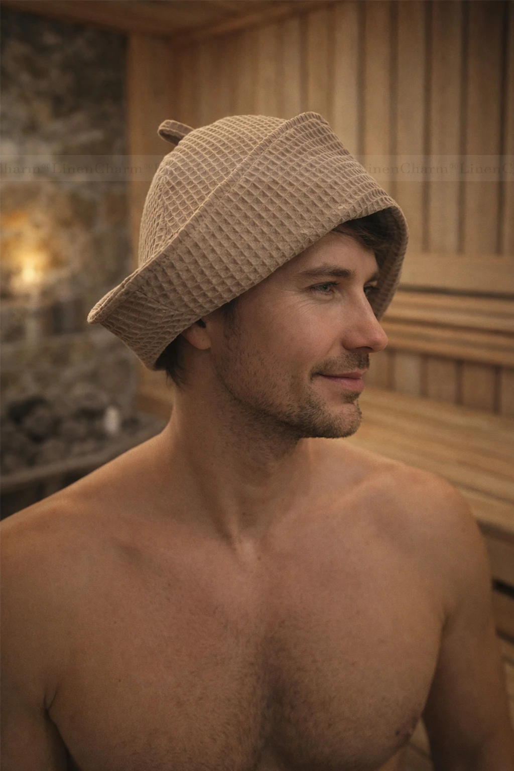 Naturalna, oddychająca i stylowa czapka do sauny z bawełny waflowej 100%. Idealna zarówno dla kobiet, jak i mężczyzn. Zapewnia skuteczną ochronę głowy przed przegrzaniem podczas korzystania z sauny suchej, parowej oraz SPA.