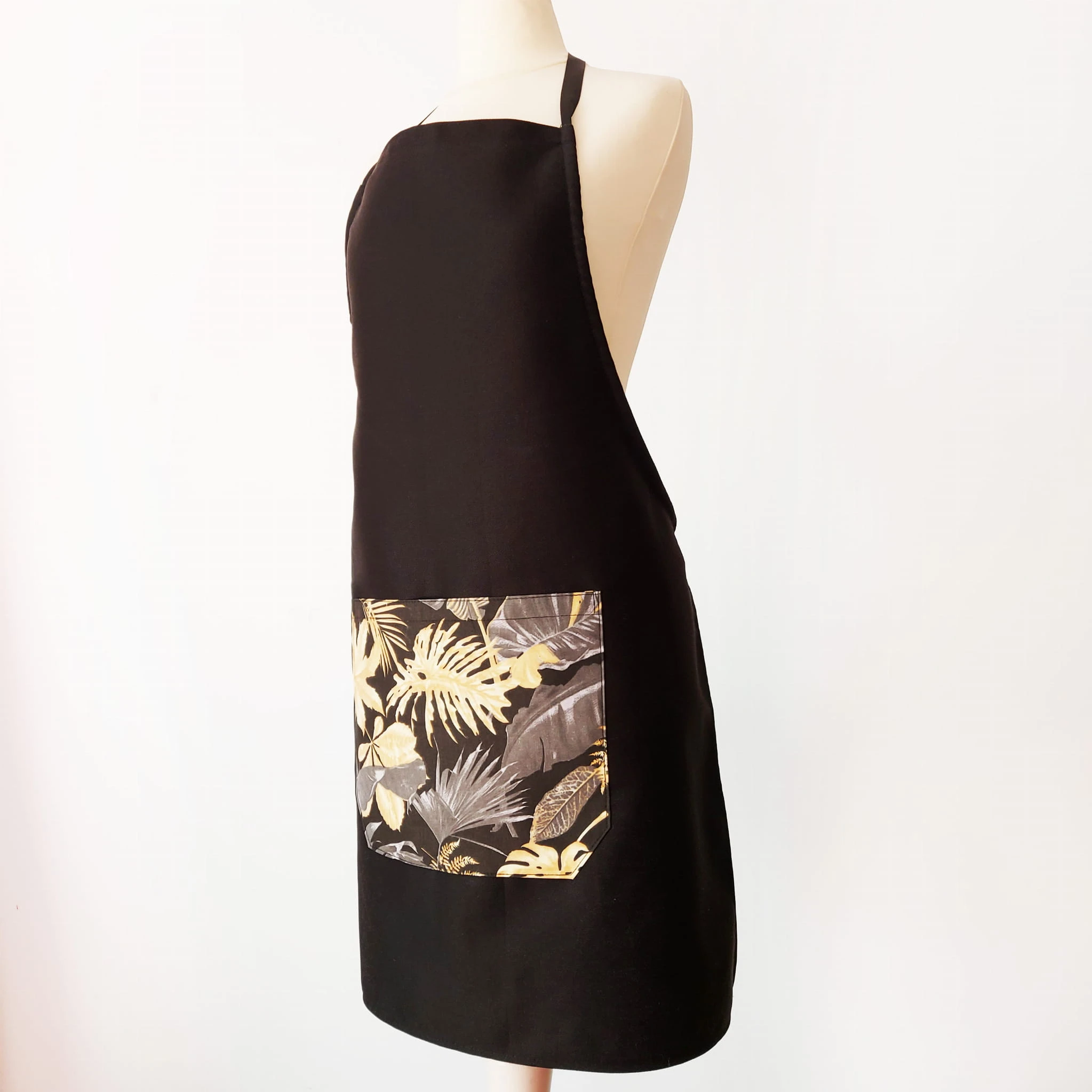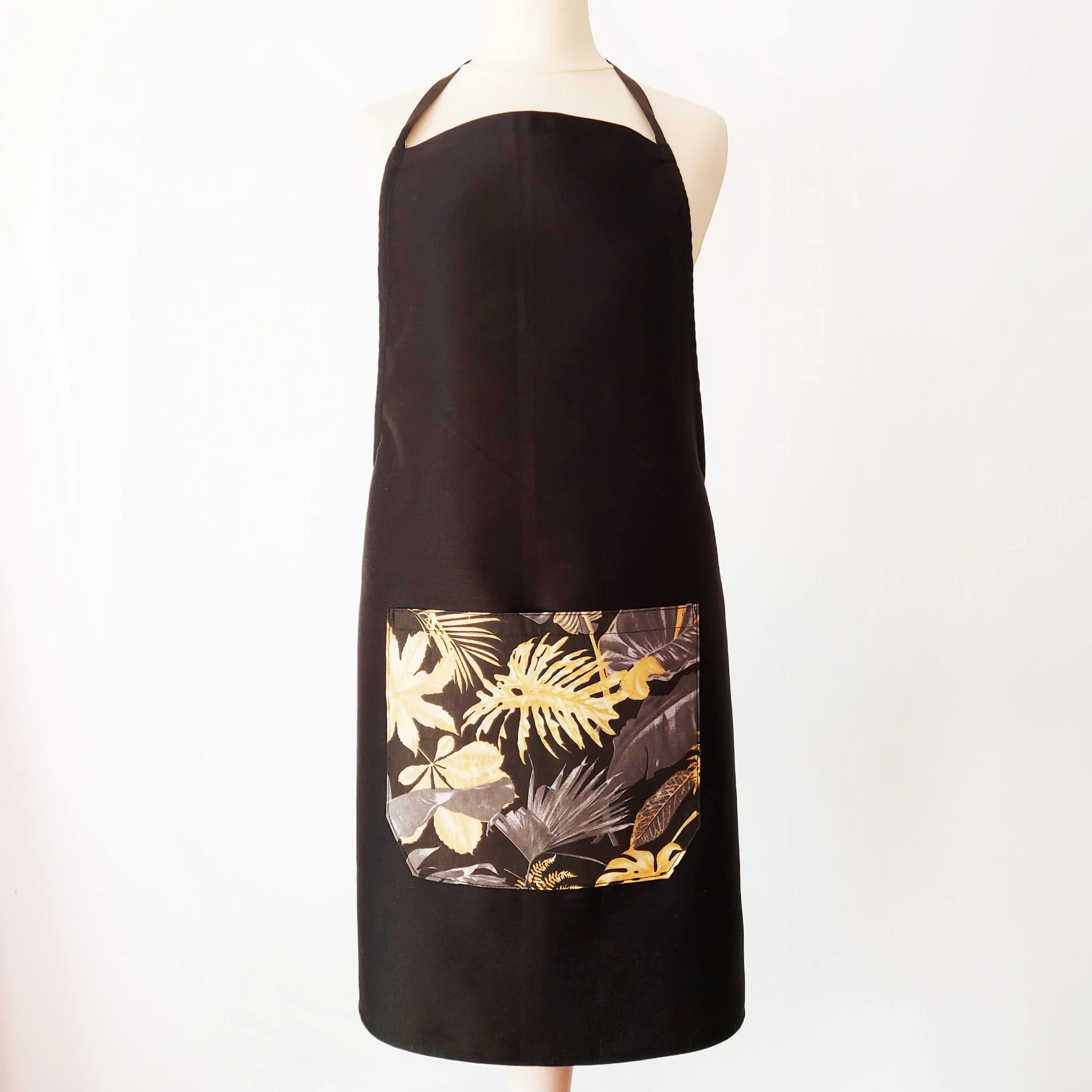 Fartuch czarny bawełniany z kieszonką złote palmy