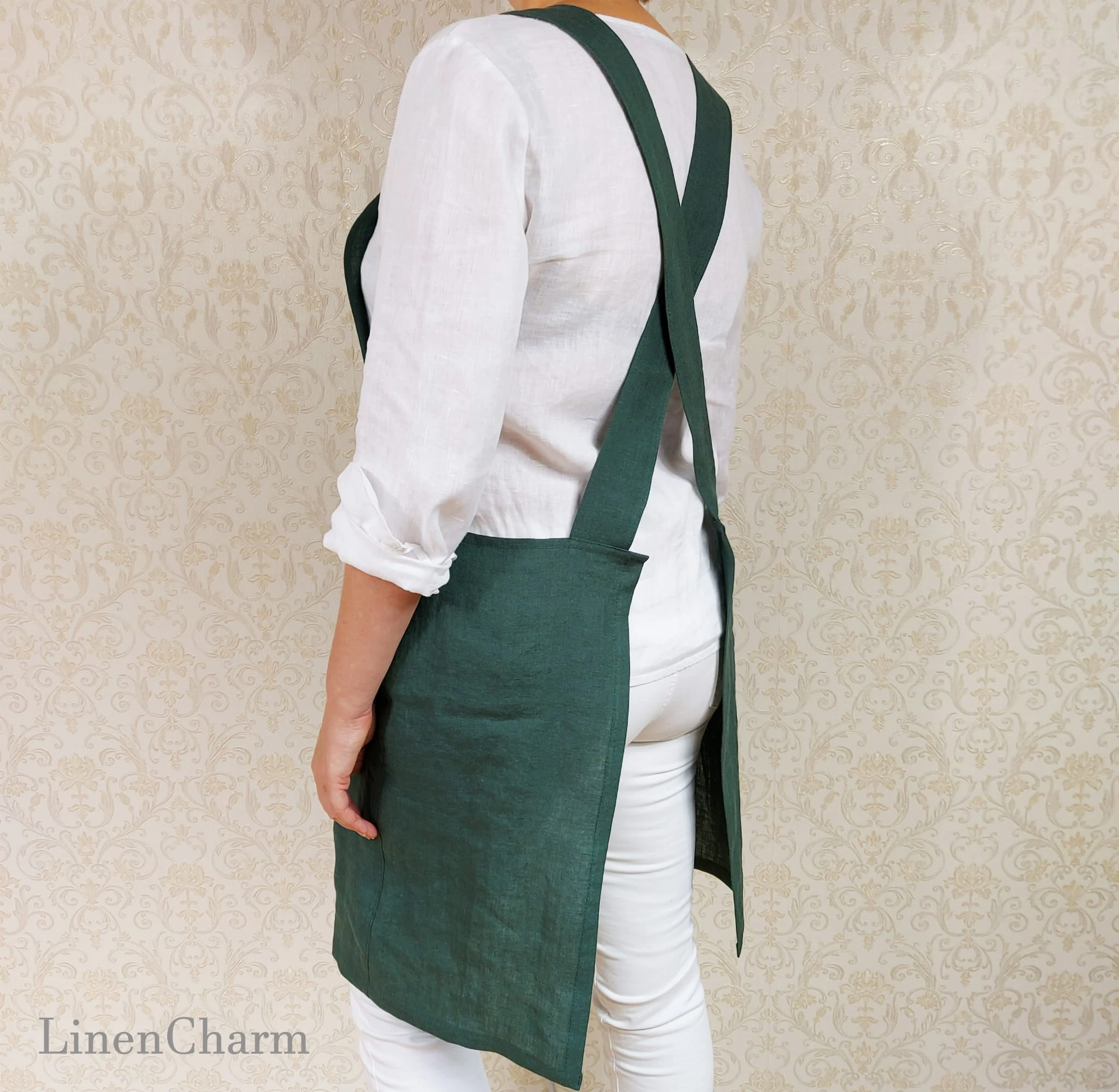 Fartuch kuchenny lniany, zapaska, fartuszek damski, fartuch japoński.