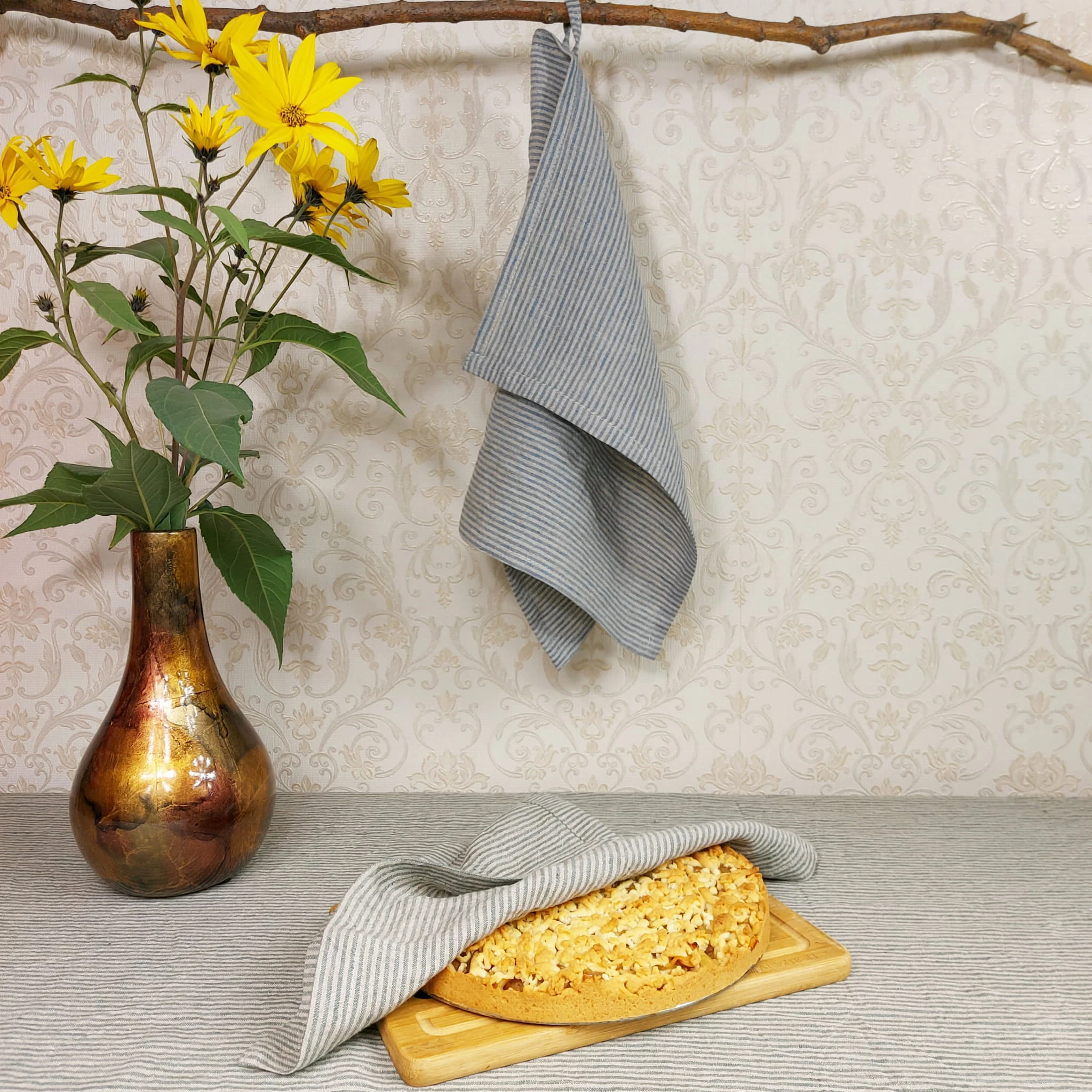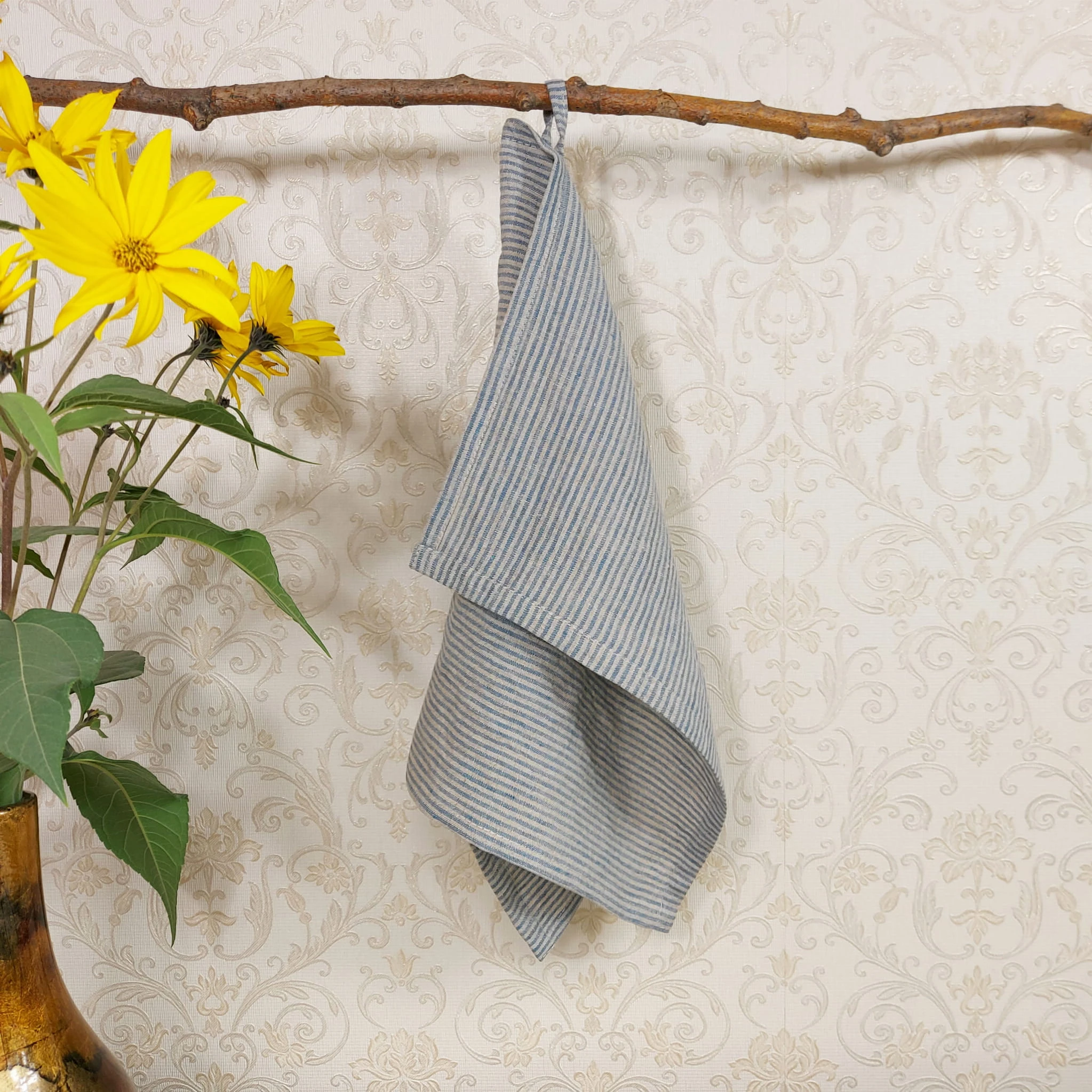 Ręcznik lniany, ściereczka lniana, Niebieski Paski 40x60cm