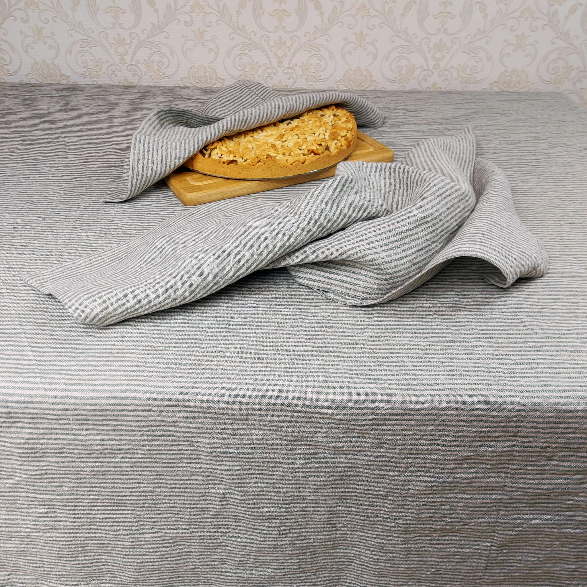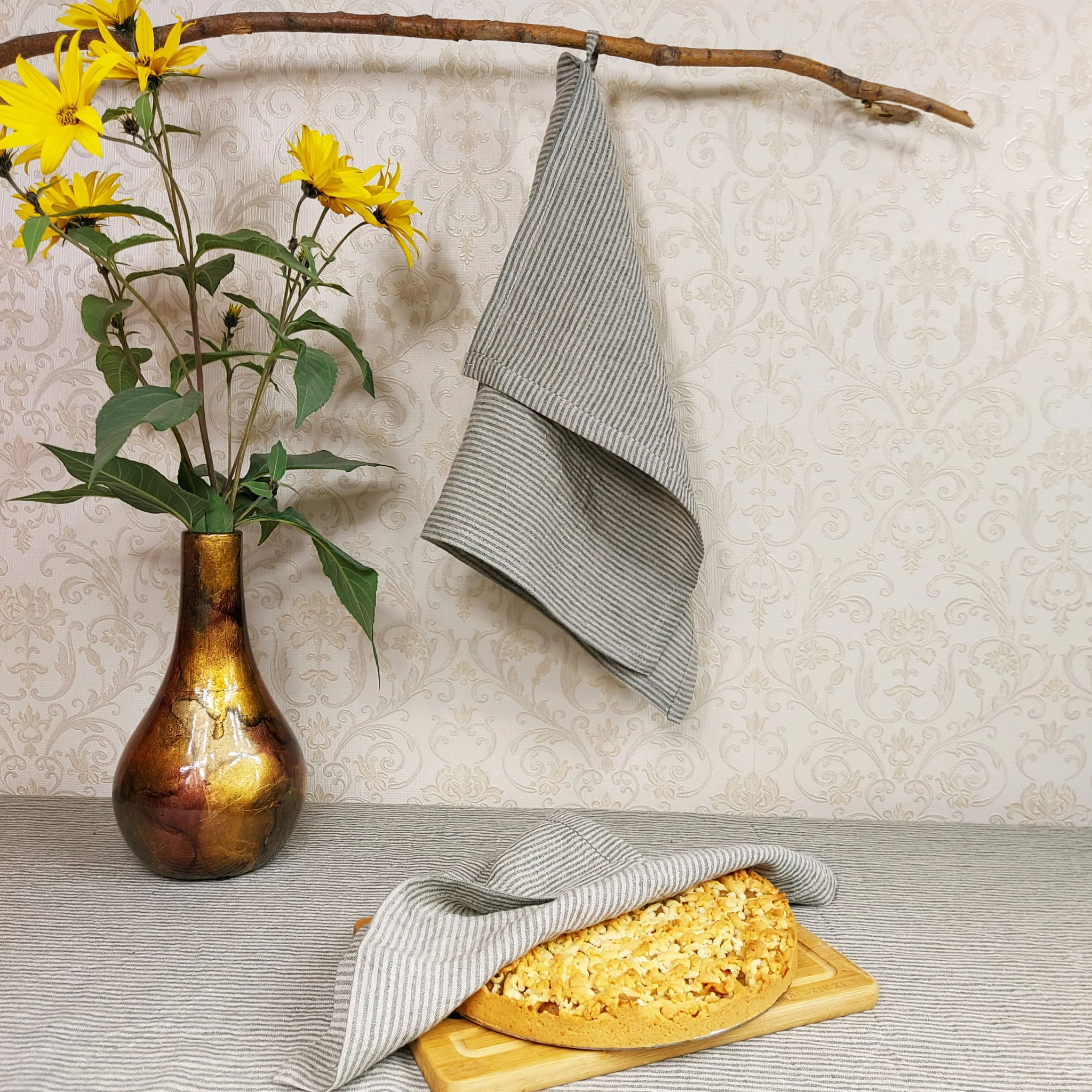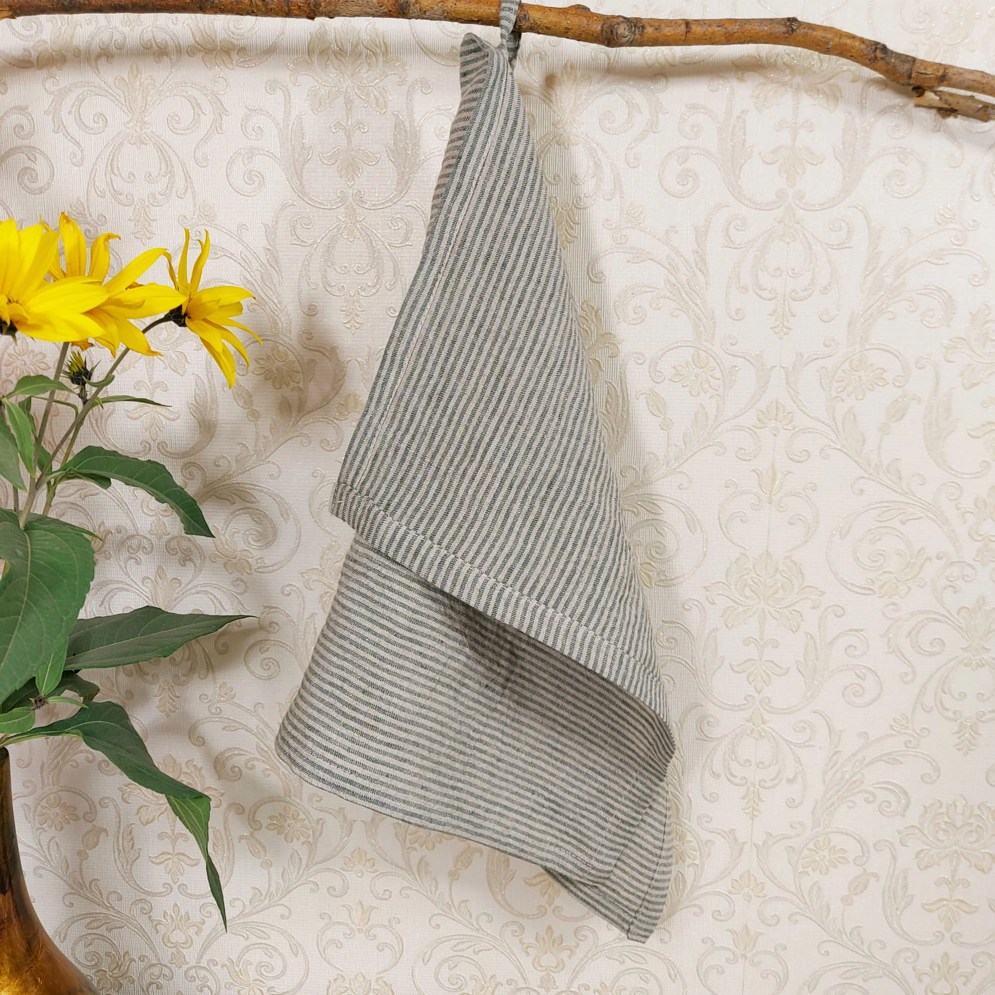 Ręcznik lniany, ściereczka lniana, Zielone Paski 40x60cm