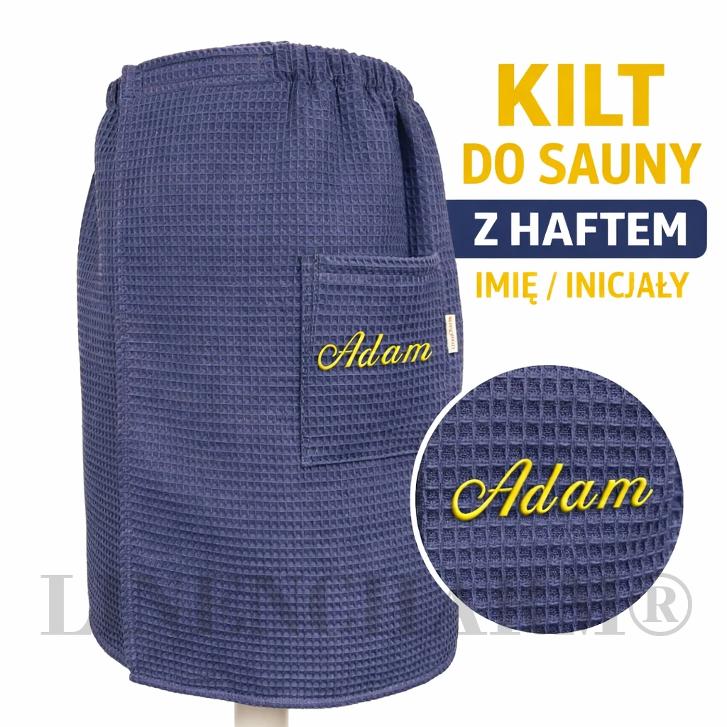 Męski zestaw sauna SPA – kilt z personalizowanym haftem + ręcznik z bawełny